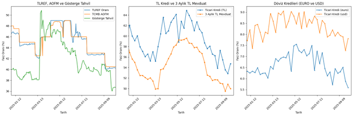 TCMB’nin günlük sterilizasyonu 799 milyar TL’den 967 milyar TL’ye çıktı. Dolar cinsinden kredi faizlerinde 54 baz puanlık artış, euro kredilerde 29 baz puanlık düşüş yaşandı. TL ticari kredilerde ise oranlar %54,74 olarak gerçekleşti[1].