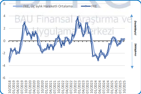 FKE’nin sıfırın altında olması sıkılaştırıcı, sıfırın üzerinde olması ise destekleyici olduğunu gösteriyor.Bahçeşehir Üniversitesinin açıkladığı finansal koşullar endeksine göre finansal koşullar pozitif. Yani dezenflasyonist bir görünüm söz konusu değil. TCMB’nin bugünkü kararında herhangi bir indirim kararı alması, sıkı para politikasından uzaklaştığı anlamına gelecek.
