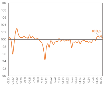 İhrac edilen ürünlere olan talep koşullarını, ihracat yapılan pazarlar üzerinden temel makroekonomik göstergeler ve altıncı düzey makroekonomik göstergeler kullanarak takip eden İhracat Talep Endeksi, 2025 yılı Ağustos ayında aylık bazda %1,7 ve bir önceki yılın aynı ayına göre %1,5 azalış ile 100,2 seviyesine gerileyerek uzun dönem ortalamasının altında seyretmiştir. Ağustos 2025’te, enflasyondaki kısmi iyileşmelere rağmen işsizlik, tüketici güveni, iş güveni ve sanayi üretimi göstergelerindeki gerilemeler, talep endeksinin uzun dönem ortalamasının altına düşmesine yol açmıştır.
