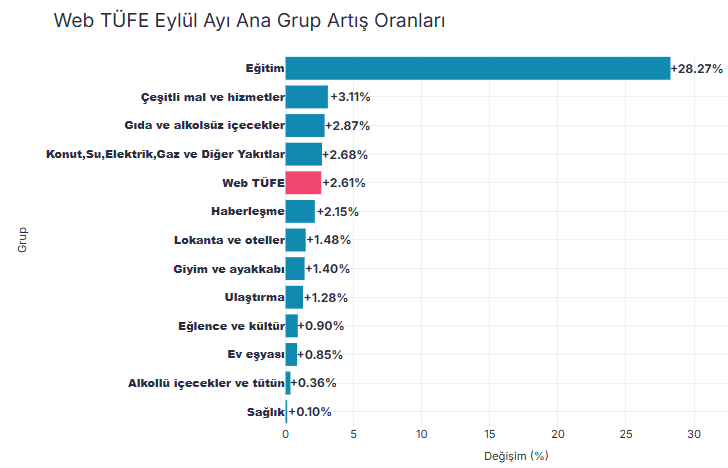 Enflasyona dair önemli ipuçları veren ve online verilerden enflasyon hesaplayan Web TÜFE eylül ayında 2,61 oldu. Akbank ekonomik araştırmaların “nowcasting” tahmini de 2,6 idi. Özellikle eğitim ve gıdadaki fiyat artışları dikkat çekici düzeyde.