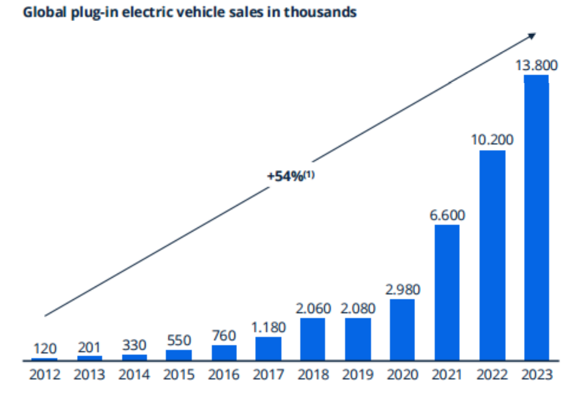yılda elektrikli (plug in) araçların satış büyümesi yıllık ortalama %54. Bu inanılmaz bir rakam.